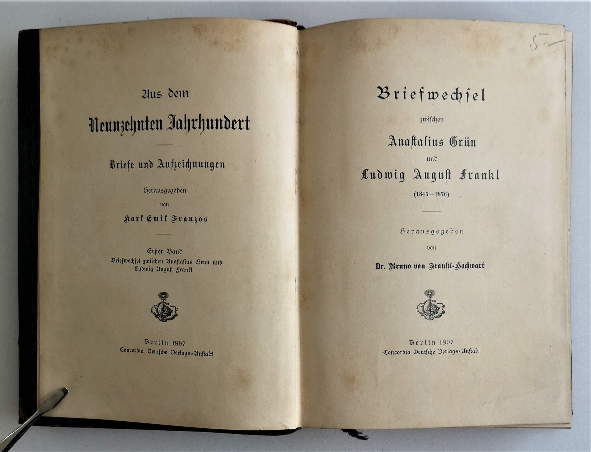 Briefwechsel zwischen Anastasius Grün und Ludwig August Frankl